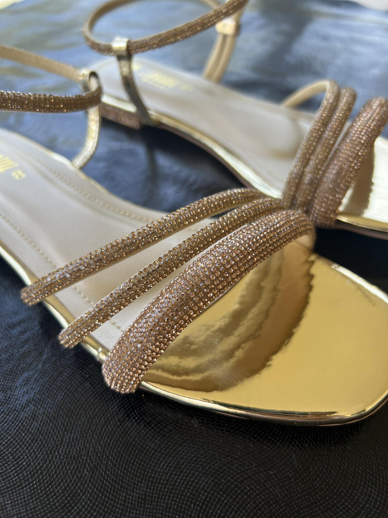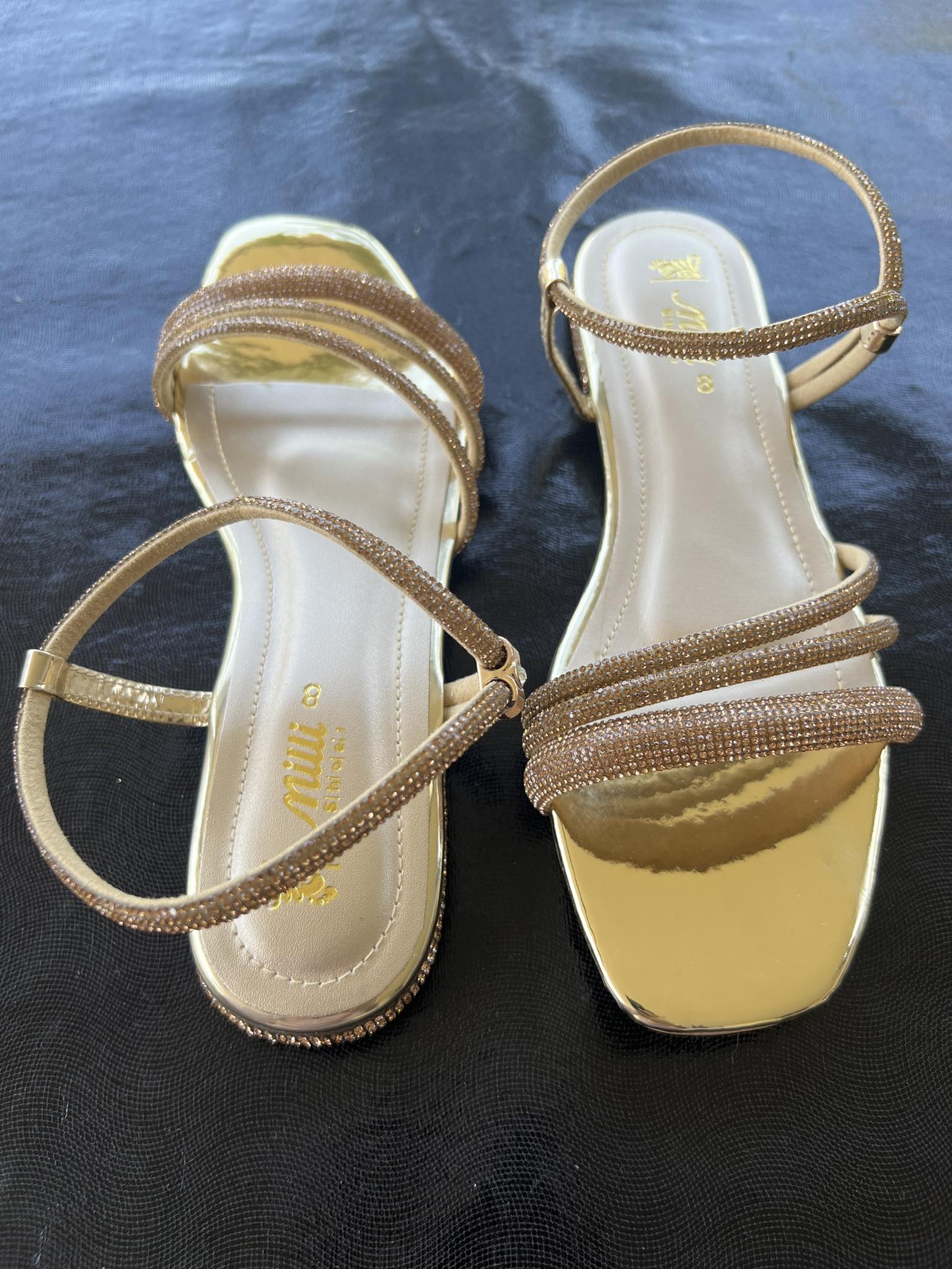Step out in style with our Formal Sandals! Features include stunning diamentes detailing, a sparkling studded heel in elegant golden accents. The easy adjustable straps make for a comfortable fit while adding a touch of glamour to any outfit. Elevate your look and turn heads with these must-have sandals!