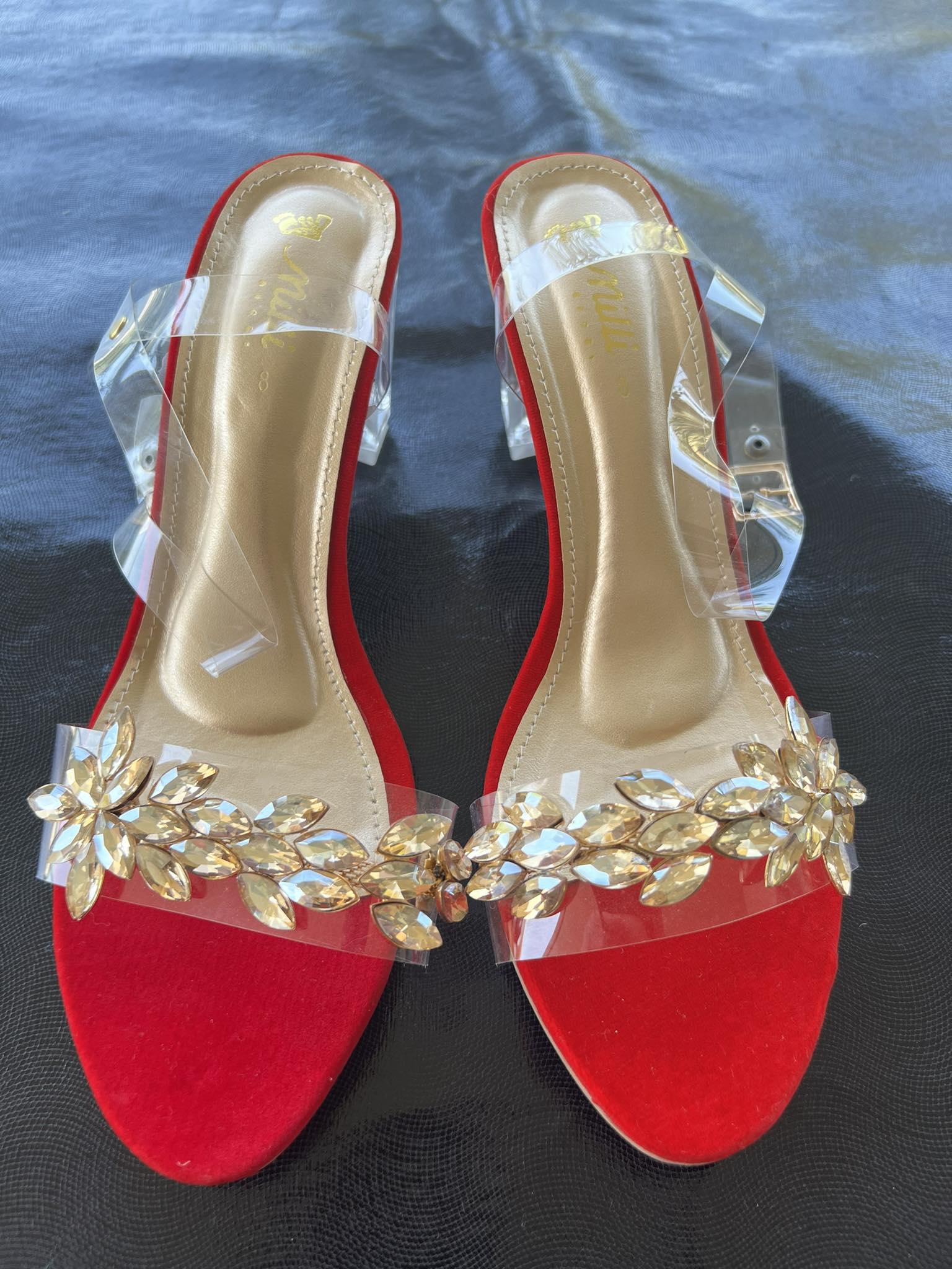 Step into the world of luxury with our Glass Cinderella heels! The see-through glass rexene adds a classic touch while the golden stone work on the strap brings elegance. Ankle grip strap provides comfort and stability. Indulge in a fairytale dream with every step while red insole makes it luxurious.