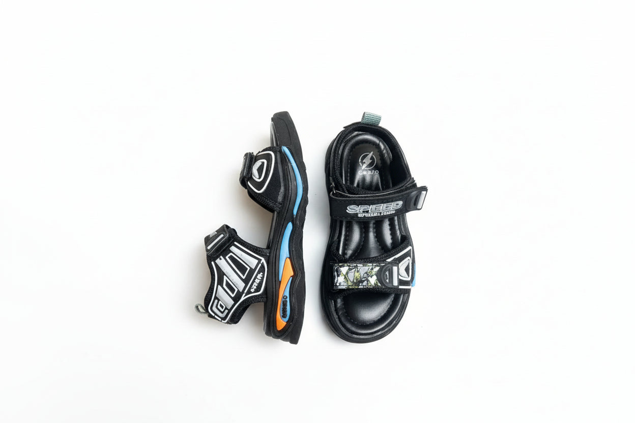 Keep your child's feet comfortable and secure with these casual sandals designed for active play. Featuring a soft cushioned insole that provides all-day comfort, adjustable velcro straps ensure a perfect fit as your child grows. The ankle strap offers extra grip and stability while walking, preventing slips during outdoor adventures. Available in classic black, these versatile sandals are perfect for everyday wear, beach trips, or casual outings.